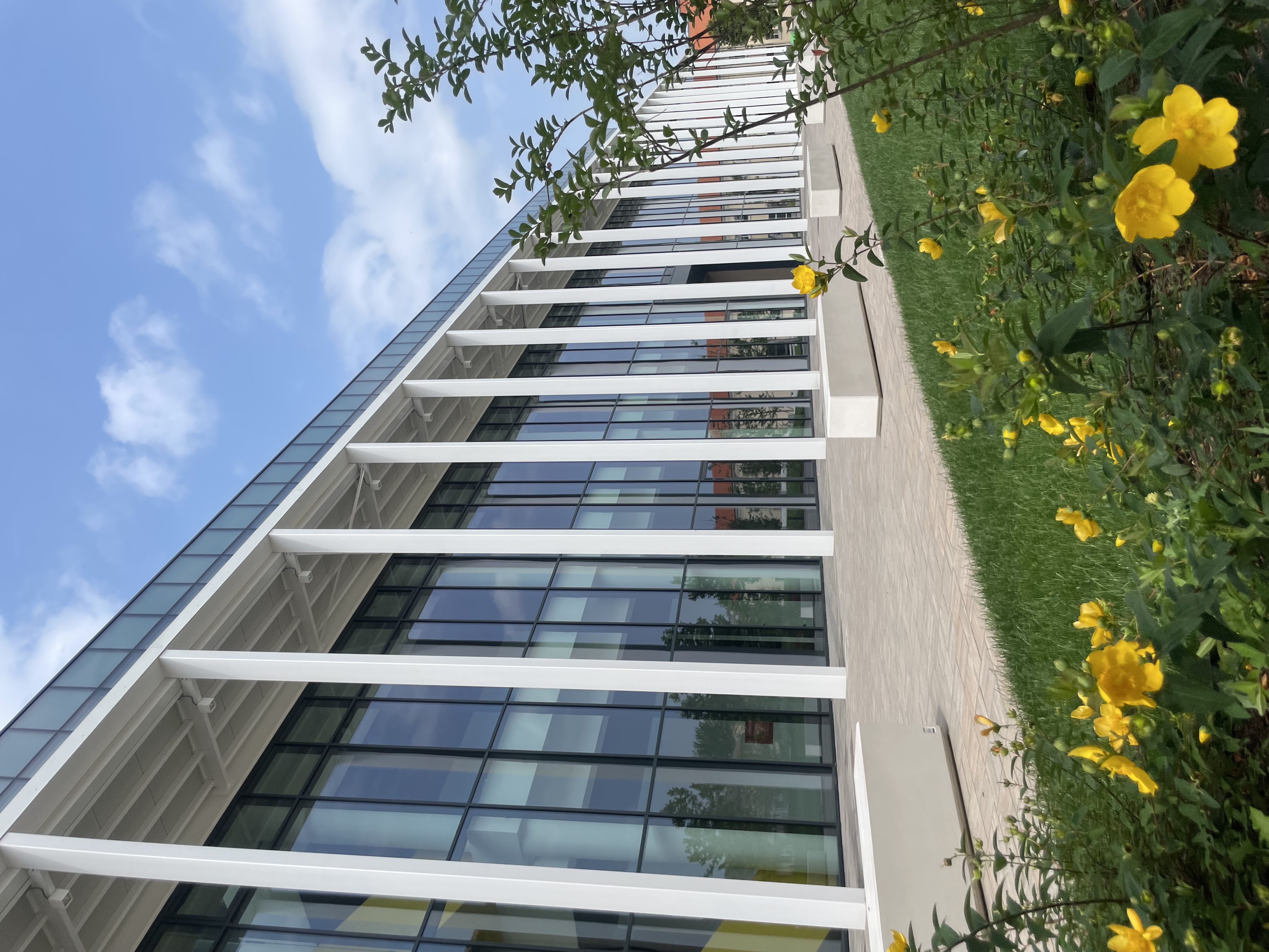 Area in front of the secondary entrance to the yellow study room, on the football pitch side;Ground floor parking under Building A, to the right of the entrance;Under the entrance…